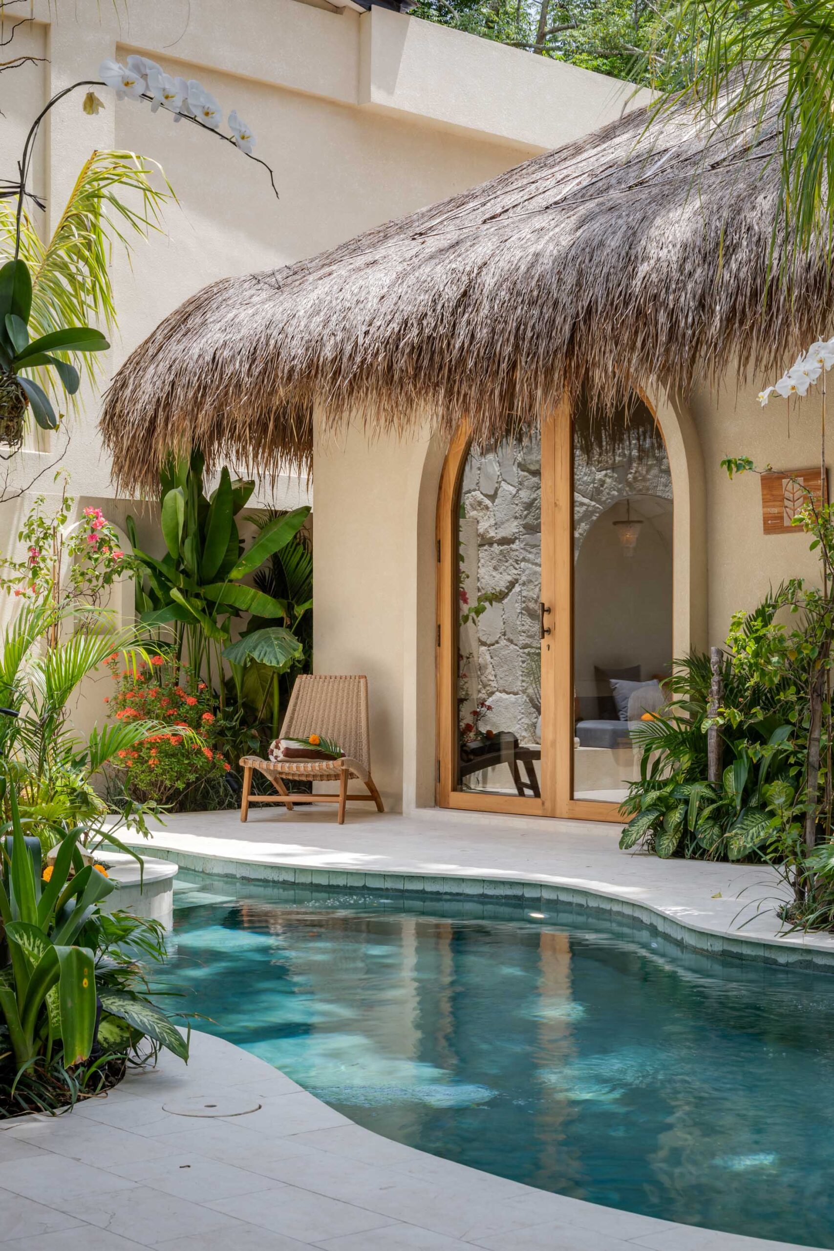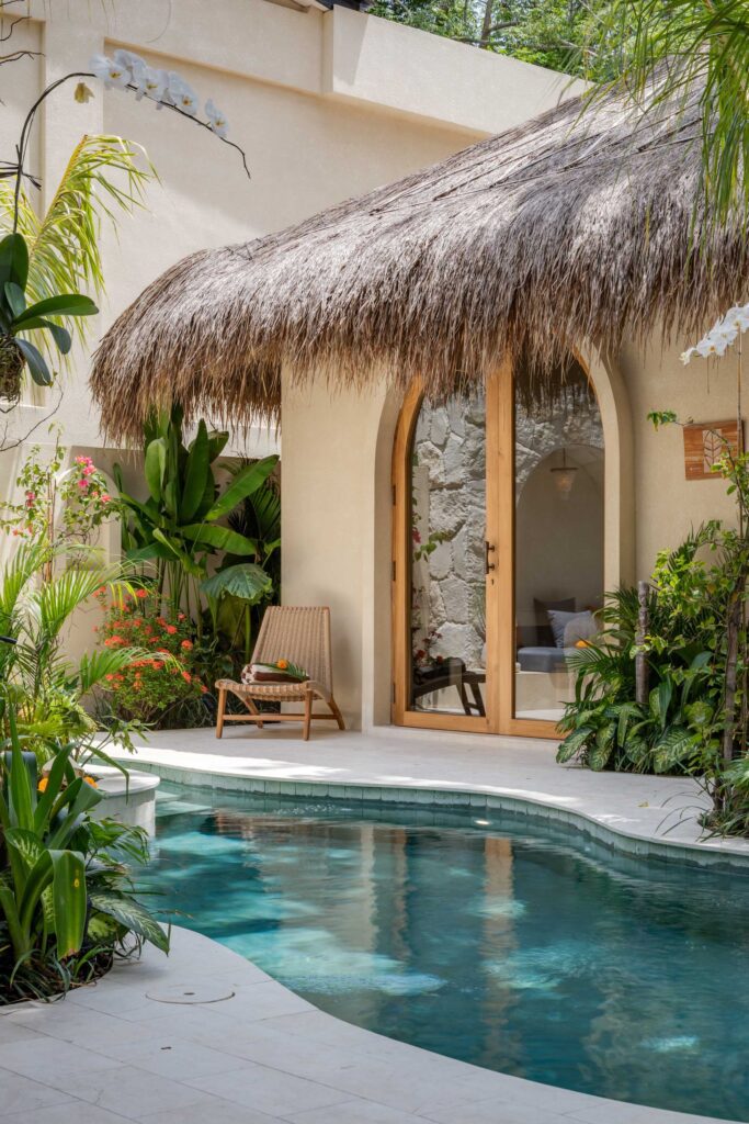 Nestled in the lush greenery of Bingin, Bebas Suites is a one-of-a-kind retreat offering 4 individually designed suites gathered around a stunning shared pool. Each suite is a private sanctuary, blending sculptural architecture, warm natural materials, and curated artisan details — all opening directly onto a tropical garden that feels worlds away from the everyday.